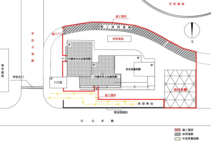 2、北門非機(jī)動(dòng)車停車棚暫停使用;