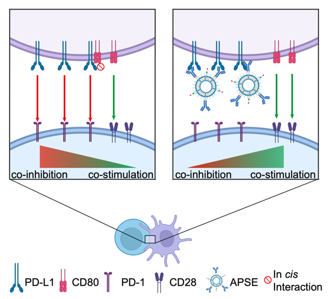 腫瘤疫苗是腫瘤免疫治療領域的重要研究方向之一。它促使免疫系統識別并處理腫瘤抗原,進而激發針對腫瘤抗原特異性細胞的免疫反應,從而達到殺傷腫瘤細胞并預防復發的效果。然而,腫瘤負荷會導致抗原呈遞細胞與T細胞之間第二信號的異常(包括共刺激信號和共抑制信號),這將阻礙正常的抗原呈遞過程,最終導致腫瘤疫苗失效。因此,腫瘤疫苗的一大關鍵挑戰在于增強共刺激信號并減少共抑制信號,從而確保第二信號的協調作用,最終實現有效的抗原呈遞。