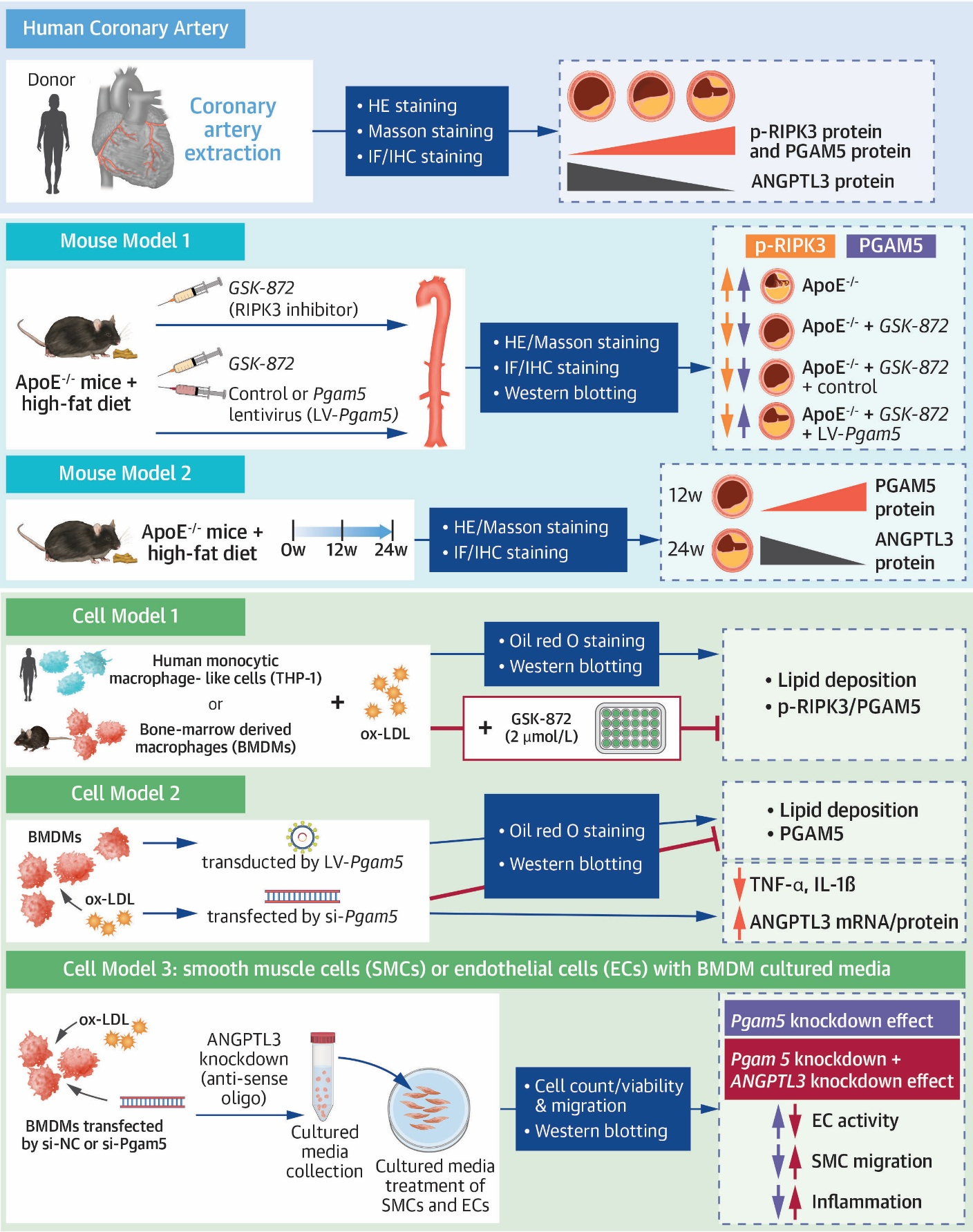 研究者首先觀察到PGAM5蛋白在動脈粥樣硬化斑塊巨噬細胞中高表達,且其表達水平與病變程度呈正相關。然后在動物和細胞模型中進一步明確了PGAM5蛋白與動脈粥樣硬化的相關性。機制上,PGAM5通過調控血管生成素樣蛋白3(ANGPTL3)基因和蛋白表達,介導巨噬細胞與平滑肌細胞、內皮細胞間細胞通訊,促進細胞增殖、遷移和炎癥反應,參與動脈粥樣硬化斑塊進展。該研究揭示了PGAM5-ANGPTL3在動脈粥樣硬化中的作用,為防治動脈粥樣硬化提供了新的研究思路和分子靶點。