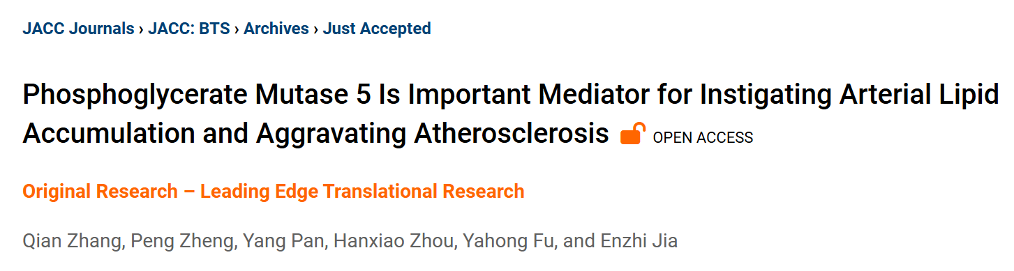 近日,我校第一附屬醫院心血管內科賈恩志教授在《JACC:基礎與轉化科學》(JACC: Basic to Translational Science)雜志發表了題為“磷酸甘油酸變位酶5是引起脂質蓄積和加重動脈粥樣硬化的重要介質”(Phosphoglycerate mutase 5 is important mediator for instigating arterial lipid accumulation and aggravating atherosclerosis)的研究論文。此研究揭示了PGAM5在動脈粥樣硬化病變中的作用,為防治動脈粥樣硬化提供了新的見解。