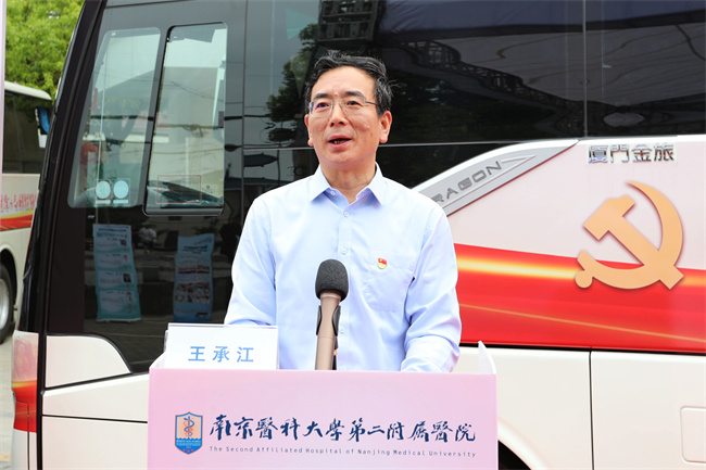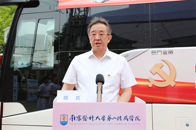 顧民書記在致辭中回顧了四年來以“健康大篷車+專科輕騎兵”為代表的新時代巡回醫療所走過的數萬公里“為民路”,感謝棲霞區委、區政府、區衛健委的大力支持。他表示,第二附屬醫院將進一步深化黨建內涵,不斷擴大“健康大篷車+??戚p騎兵”服務半徑,更加緊密院府合作,推進更多保健康、惠民生的舉措,促進優質醫療資源向基層延伸,讓新時代巡回醫療越走越堅實。