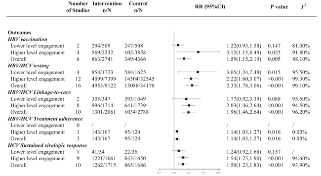 慢性乙肝(HBV)和丙肝(HCV)每年導致全球超百萬人死亡,疾病負擔主要集中于中低收入國家。盡管現有疫苗和治療手段已取得突破性進展,但診斷率低、治療依從性差等公共衛生難題仍普遍存在。研究團隊突破傳統自上而下干預模式的局限,通過雙軌策略,發現激活社群內生力量可顯著提升肝炎防控效能。與常規策略相比,社群參與式干預在病毒性肝炎全流程管理(HBV疫苗接種完成率、HBV/HCV檢測率、HBV/HCV醫療服務尋求率、HBV/HCV治療依從性和HCV持續病毒反應率)效果顯著;全球(中低收入國家為主)眾包征集的28項作品分析結果提示,社群主導的衛生健康項目能有效推動醫療改革并提升醫療資源可及性,包括本地化宣傳可有效降低疾病污名化、建立有效轉診網絡體系提升醫療可及性、患者倡導組織推動改革、爭取政策支持等。