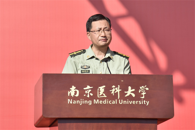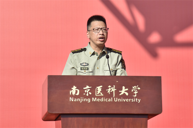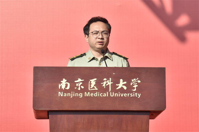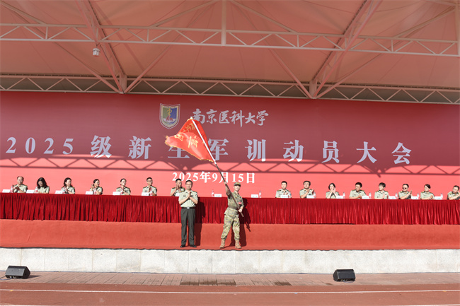 沈瑞林副校長向軍訓團授團旗,并作軍訓動員講話。他對2025級新生提出三點期望:一是錨定思想航向,筑牢報國根基;二是恪守鋼鐵紀律,錘煉過硬作風;三是勇于淬煉自我,融軍魂入醫魂。他表示,今年是學校擘畫“十五五”,聚力“雙一流”創新發展的關鍵之年,也是同學們人生嶄新篇章的開啟之年。希望全體同學以青春之名、奮斗之姿,在軍訓熔爐中百煉成鋼,為學校發展、國家富強和人民健康事業貢獻磅礴的青春力量。