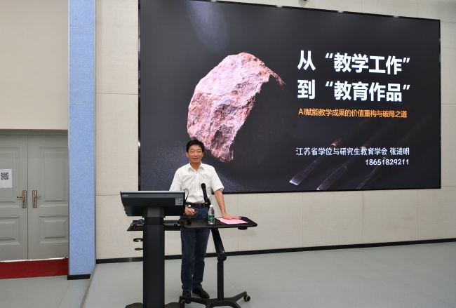 南京工業大學原副校長張進明教授作題為《從“教學工作”到“教育作品”:AI賦能教學成果的價值重構與破局之道》主題報告。張教授闡述了教育成果申報與創新的核心邏輯與方法論,以“破冰與立論”為起點,強調教育成果應從“解題”升維至“解系統”,并基于教育、管理理論的視角,從診斷問題本質、設計解決方案、分析卓越案例、升華價值內核等方面,結合AI技術的運用,系統介紹了如何將教育實踐提煉為具有普適性和影響力的“教育作品”。最后,他以評委視角解析成果評價標準,強調成果需具備系統性、創新性與證據化支撐,為醫學教育研究者提供了從戰略定位到實踐落地的全面指導。
