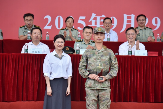 9月29日下午,我校2025級新生軍訓成果匯報暨表彰大會在江寧校區田徑場舉行。中國人民解放軍31619部隊負責領導、南京警備區戰備建設處處長王大鵬上校、高淳區人民武裝部部長周煒上校,校領導蘭青、夏有兵、徐珊、岳國峰、李堅,校黨委常委、宣傳部部長王春暉,全體承訓官兵、學校中層干部、帶訓輔導員、退役在校大學生士兵教官以及2025級全體參訓新生參加大會。大會由黨委常委、副校長沈瑞林主持。