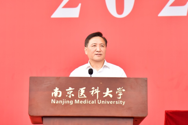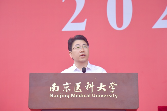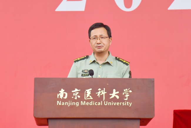 黨委書記蘭青作軍訓總結講話。他代表學校向圓滿完成15天軍訓任務的2025級本科生新生表示祝賀,向精心施訓的全體承訓官兵及全程陪伴、悉心服務的各位老師、輔導員和后勤保障人員致以衷心的感謝;向圓滿完成軍訓任務、用汗水書寫青春擔當的全體2025級新生,致以熱烈的祝賀和親切的慰問。他指出,軍訓是同學們踏入南醫的“第一課”,是錘煉意志、砥礪品格的“大熔爐”,更是傳承精神、厚植情懷的“必修課”,紀念中國人民抗日戰爭暨世界反法西斯戰爭勝利80周年閱兵精神的“校園踐行”,新生以規范動作、堅定意志詮釋了“博學至精,明德至善”的校訓。他希望同學們一要永葆愛國情懷,堅定理想信念;二要弘揚優良作風,錘煉高尚品格;三要勤奮刻苦學習,練就過硬本領;四要恪守醫者初心,踐行醫者使命。同時,珍藏這段難忘的軍訓記憶,以此為新的起點,繼承和發揚人民軍隊的優良傳統,以更加飽滿的熱情、更加昂揚的斗志、更加堅實的步伐,投身到精彩的大學生活中,努力成長為有理想、敢擔當、能吃苦、肯奮斗的新時代卓越醫學人才,為護佑人民健康、推動醫學事業發展貢獻青春力量。