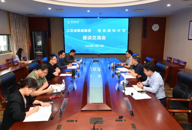 徐彥武總經(jīng)理介紹了省數(shù)據(jù)集團(tuán)在數(shù)據(jù)運(yùn)營服務(wù)、數(shù)字基礎(chǔ)設(shè)施建設(shè)與產(chǎn)業(yè)生態(tài)培育等板塊的功能定位與發(fā)展情況,并充分肯定我校在醫(yī)學(xué)數(shù)據(jù)資源積累、科研創(chuàng)新與產(chǎn)學(xué)研協(xié)同等方面形成的扎實(shí)基礎(chǔ)。他表示,數(shù)據(jù)作為新型生產(chǎn)要素,對服務(wù)政府決策、提升民生保障、推動(dòng)產(chǎn)業(yè)創(chuàng)新發(fā)展具有重要意義。省數(shù)據(jù)集團(tuán)期待與南京醫(yī)科大學(xué)深化戰(zhàn)略合作,圍繞全口徑參保人群數(shù)據(jù)資源開發(fā)、區(qū)域健康綜合評價(jià)、醫(yī)療質(zhì)量與效率分析等方向開展聯(lián)合研究,共同探索數(shù)據(jù)驅(qū)動(dòng)的“醫(yī)保—醫(yī)療—醫(yī)藥”聯(lián)動(dòng)發(fā)展路徑,著力打造具有江蘇特色的健康數(shù)據(jù)應(yīng)用示范高地。