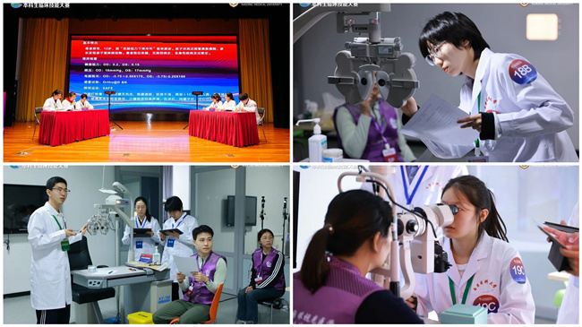 本次大賽分為團體賽、個人風采賽、大學生眼健康科普海報巡展三部分。其中,團體賽采取客觀結構化臨床考試(OSCE)的方式進行,設有門診病史采集和眼科初始檢查、外眼和眼前節檢查、眼底檢查、檢影驗光、主覺驗光及老視檢查、眼視光綜合案例分析六個考站,重點考察眼視光醫學專業領域的基本理論、基本知識、基本技能,強調考察思維能力、醫學人文關懷與團隊合作等綜合素質。