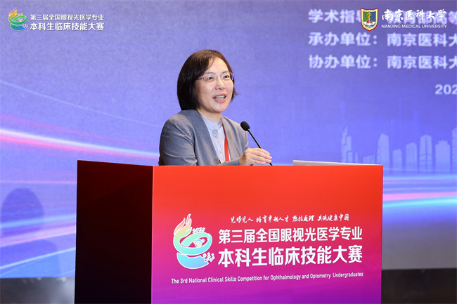 大賽競賽委員會副主任陳潔教授在致辭中指出,眼健康是“健康中國”戰略的重要內容,國家在“十三五”“十四五”期間連續發布《全國眼健康規劃》,習近平總書記多次對兒童青少年近視防控工作作出重要指示。在此背景下,全國眼視光醫學專業本科生臨床技能大賽搭建起高水平的競技平臺,不僅促進了院校間的學術交流與良性競爭,更為深化教育教學改革、創新人才培養模式提供了方向指引,為培養高素質視光醫學人才提供了實踐檢驗與創新發展的廣闊舞臺。