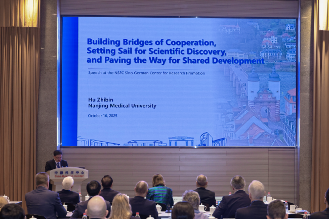 在中德科學中心25周年報告會上,胡志斌校長作為中方林島學者代表作專題報告,系統闡述了學校在中德科研合作與人才培養方面的創新實踐。他指出,國家自然科學基金委構建的階梯式人才資助體系及富有遠見的國際合作布局,為青年科技人才成長提供了系統支撐,也為學校開展高水平國際合作奠定了堅實基礎。他表示,依托基金委搭建的中德合作平臺,學校充分發揮在腫瘤防治、生殖醫學等領域的學科優勢,與德國頂尖科研機構建立了穩固的協作關系,構建了融人才聯合培養與科研協同創新于一體的全方位合作格局。面向未來,他強調,學校將在國家自然科學基金委與中德科學中心的指導下,進一步深化與德方院校和科研機構的戰略合作,拓展共建高水平科研平臺,深化人才聯合培養機制,全力推動中德醫學創新共同體建設,為服務人類衛生健康共同體持續貢獻南醫智慧與力量。